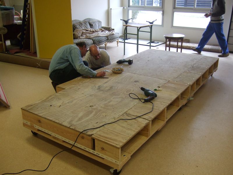 Construction d'une partie des décors pour