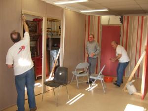 Construction d'une partie des décors pour