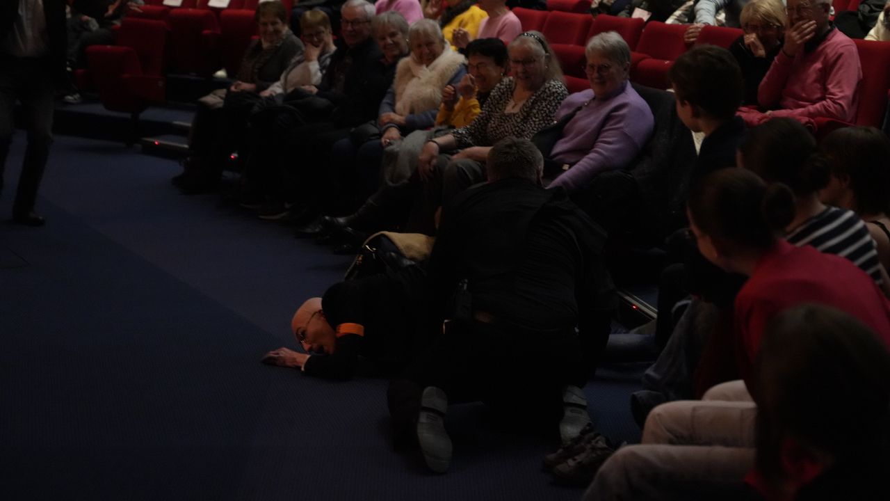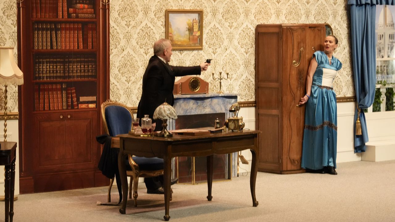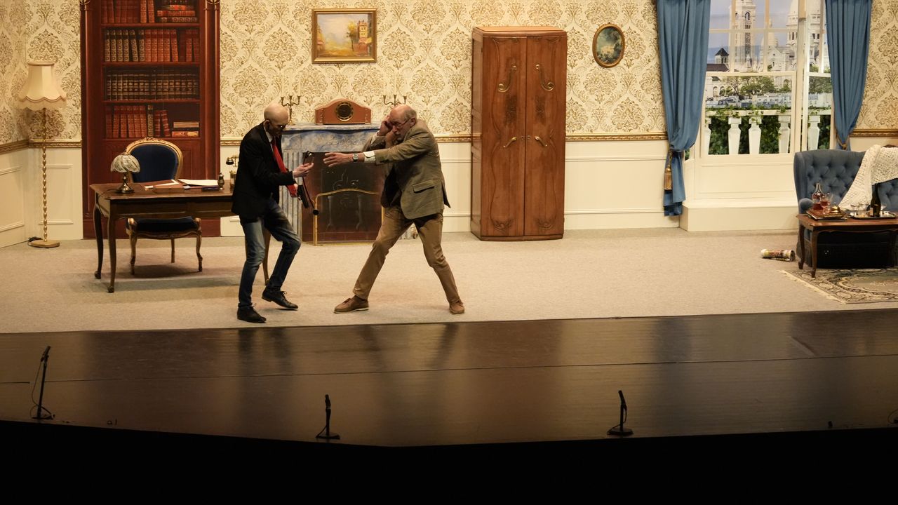 En pleine représentation d’une pièce de piètre qualité, et alors que le spectacle vient tout juste de commencer, un grave incident survient !